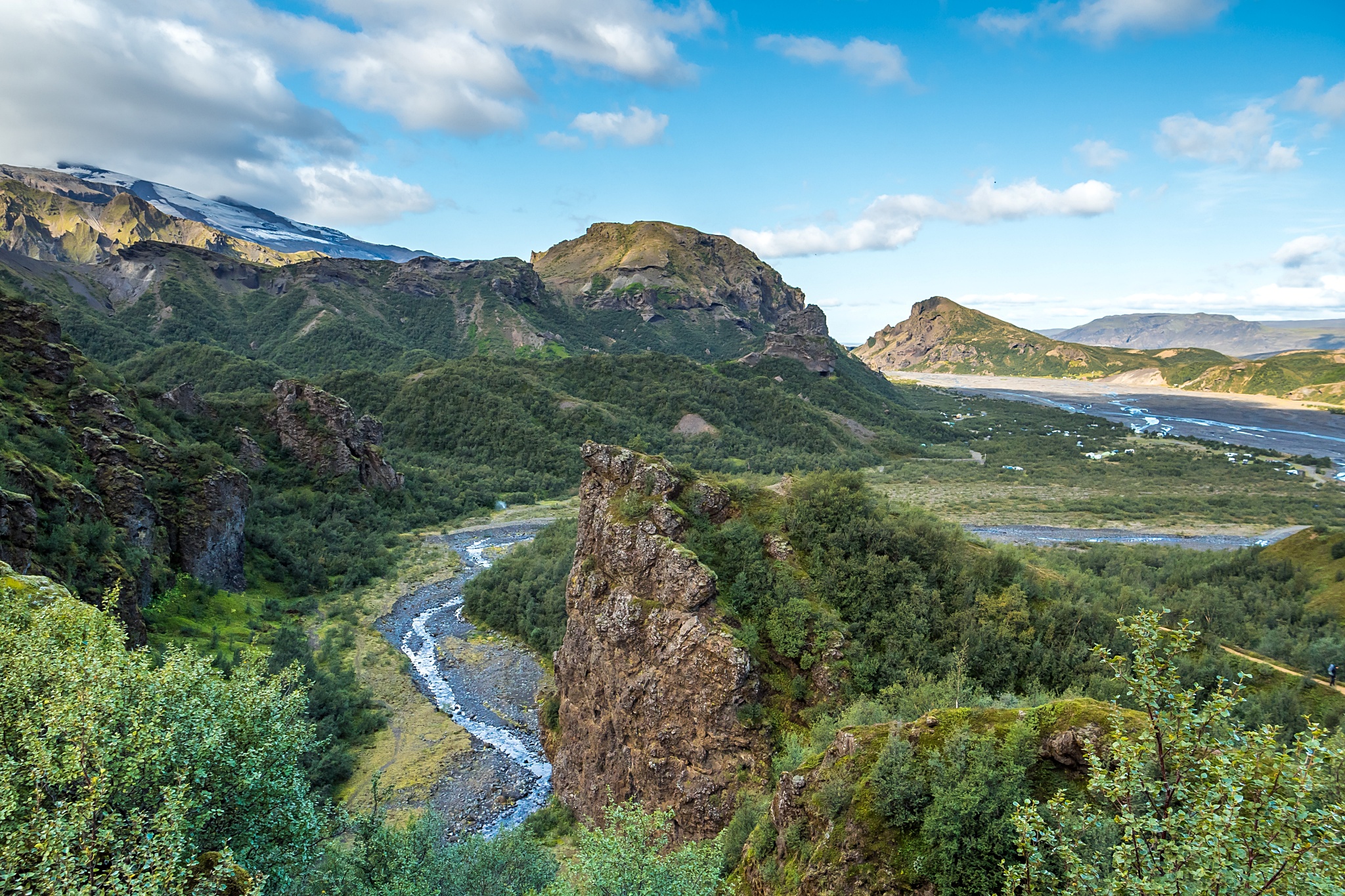 428, Pogoda zapowiada się przednio. Choć poranny przymrozek nieco mnie zaskoczył. -1 o tej porze roku, to dla nas niezbyt normalna temperatura. Szybko jednak się podnosi i nim reszta ekipy wypełzła z namiotów był już mały plusik. Jemy śniadanko, i ruszamy na treking. przed nami piękny widok. na górze widać Lodowiec Mýrdalsjökull, pod którym znajduje się Katla.