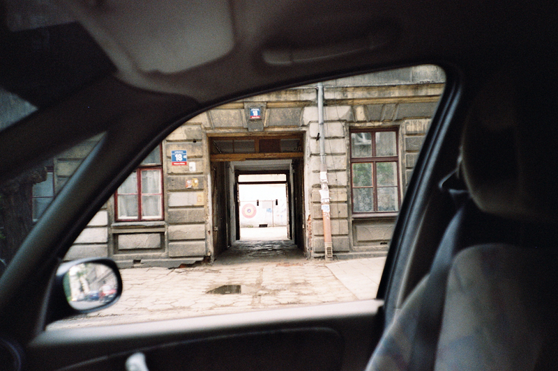 "LOMO-PRZYJACIELE NIEDOLI" na Kodaku 200. Zauważyłem następne przypadłości Lomo LC-A. To zdjęcie robiłem tak aby w kadrze były trzy pojemniki a jest jeszcze czwarty po prawej i to sporo a pamiętam, że w wizjerze było go ciut - pięknie wizjer przekłamuje. Winietka to przeważnie standard. A teraz najlepsze i nie wiem czym to jest spowodowane i czy jest to za każdym razem - zobaczcie jak Lomo krzywi obraz, widać to po lewym pojemniku na górze i na dole, siatce na górze i po krawężniki na dole