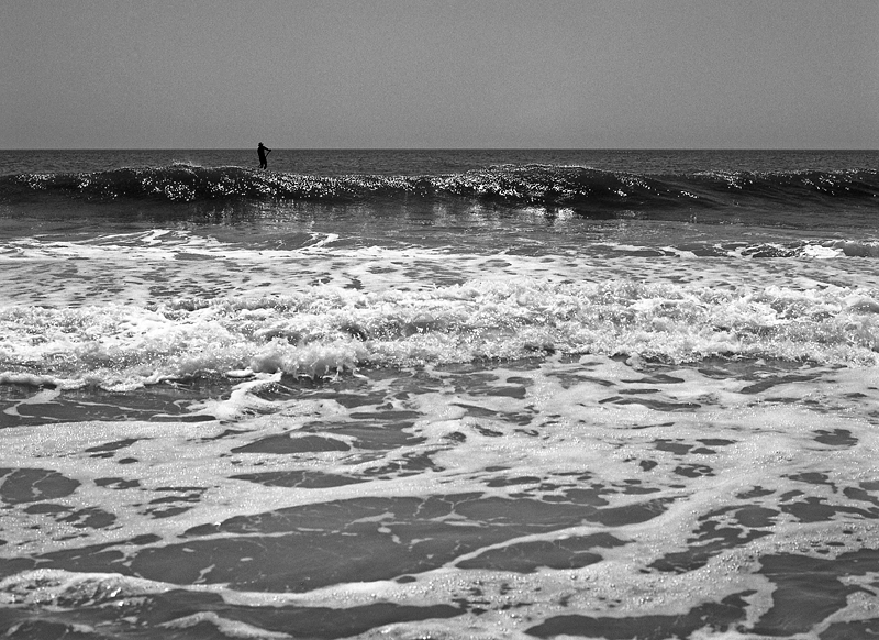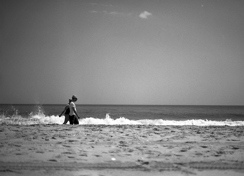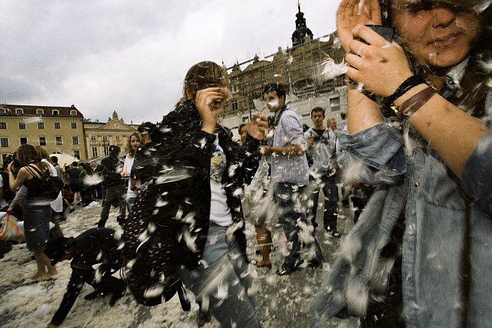 Zdjęcie przedstawia walkę na poduchy. Film to przeterminowany Kodak 100.