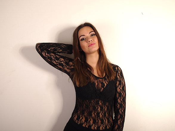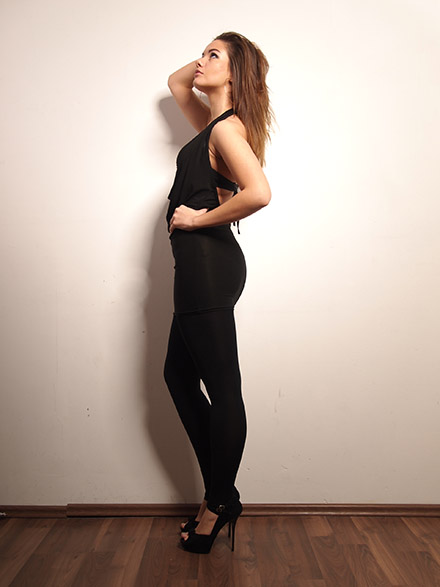 Chodzi mi o czystą biel na ścianie i równo, jasno oświetloną modelkę, coś jak efekt polaroida.