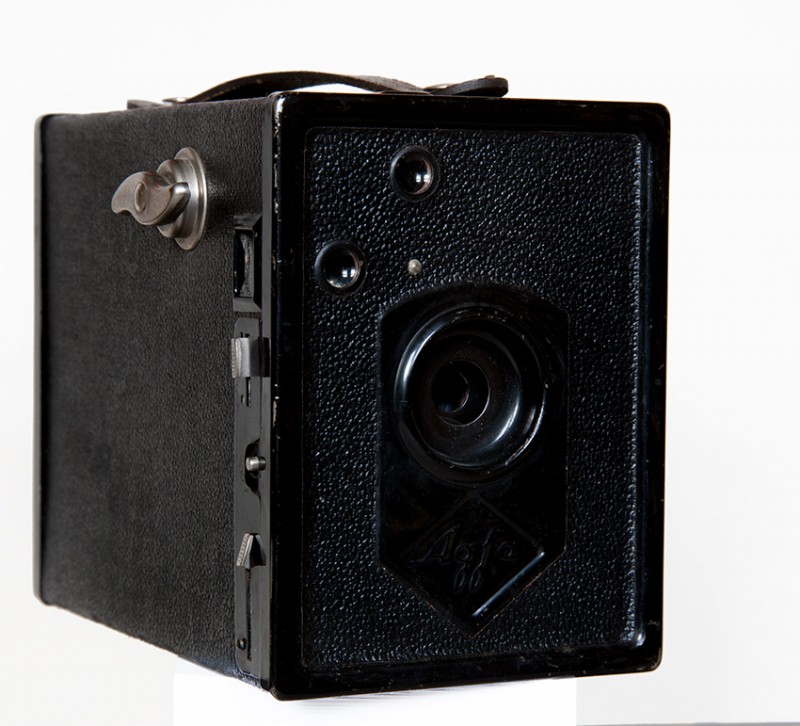 Agfa Box 44 produkowana była przez przez AGFA Camerawerk Munchen w latach 1932-38. Aparat dla wszystkich oferowany w promocji. Bardzo prosta budowa. Skrzynka z grubej tektury pokryta płótnem. Płyta tylna i przednia z metalu. Blaszka pełniąca rolę migawki usytuowana przed szkłem „obiektywu” o ogniskowej 10cm. Przysłona stała 11. Brak regulacji związanej z odległością. Czas ok 1/30 sek i B. Dwa wizjery ale z matowym szkłem. I nic tu więcej nie ma.