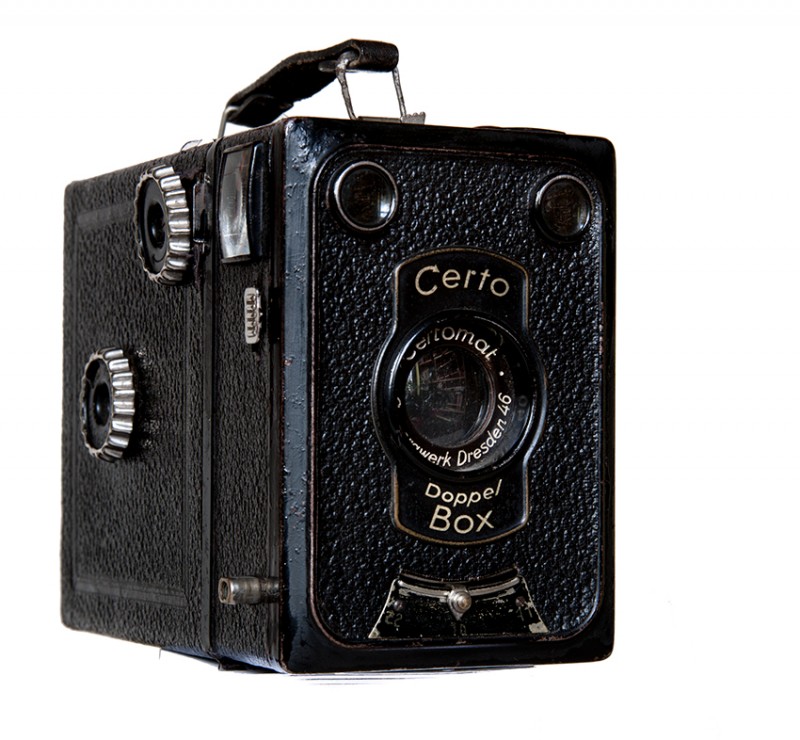 Certo Doppel Box z wyglądu jawi się nieco bardziej wypasioną skrzynką. Aparat ten produkowany przez Certo Camera Werk Drezno obsługiwał dwa formaty:4,5x6 i 6x9. Specjalna wkładka wewnątrz komory aparatu umożliwiała zmianę formatu za pomocą przesuwnej ramki. Pokrętlo na bocznej płycie było za tą zmianę odpowiedzialne. Różnej wielkości dziurki w blaszce przesuwanej dźwignią odpowiadały przysłonom 11, 16, 22 . Czasy: ok.1/25, B i Z. Ostrzenie w dwóch zakresach: 2-5m i 5 do nieskończoności przy pomocy dodatkowej soczewki. Prezentowany model pochodzi z ok 1935 roku.