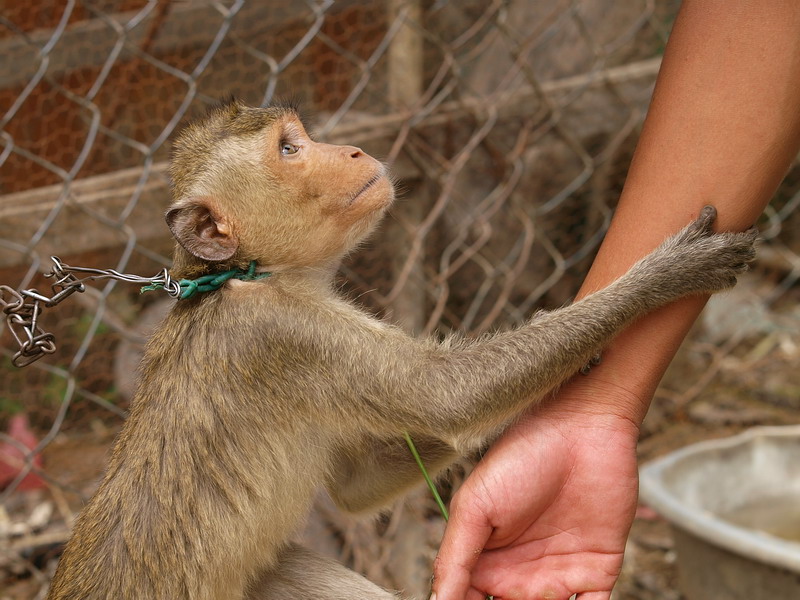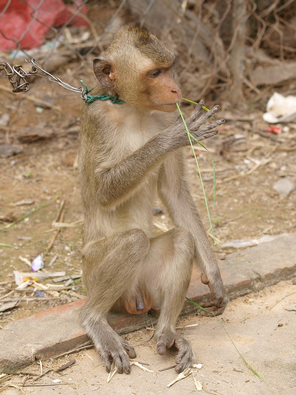Jadąc dalej w przypadkowym gospodarstwie spotykamy przywiązaną do ogrodzenia małpkę.