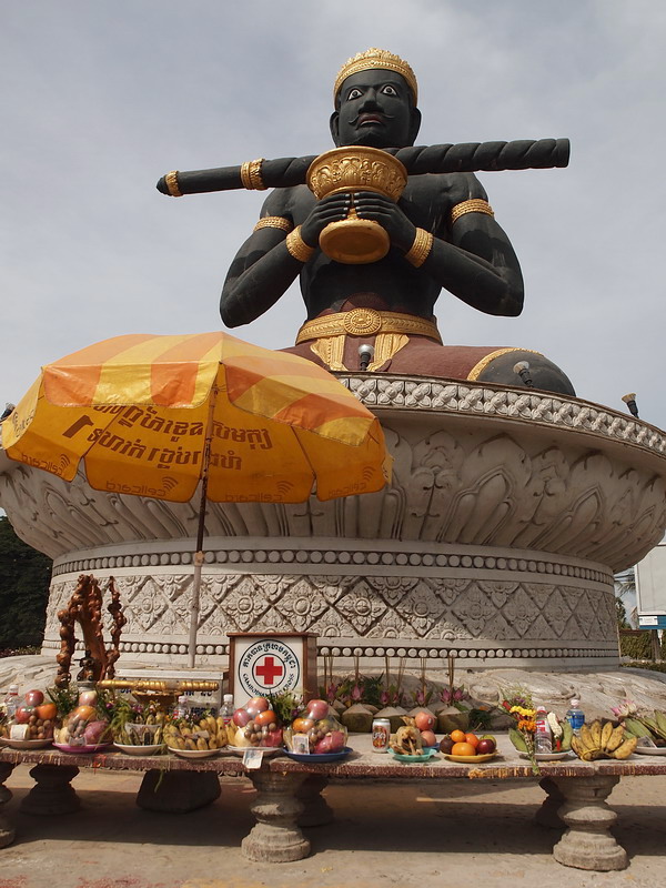 Chyba najbardziej chatrakterystyczny punkt, pomnik biednego drwala Dambanga z magiczną, drewnianą pałką. Przyjeżdzają tutaj Khmerowie nawet z odległych zakątków prowincji, składają ofiary prosząc o zdrowie, lepsze plony, czy zdanie egzaminu.
