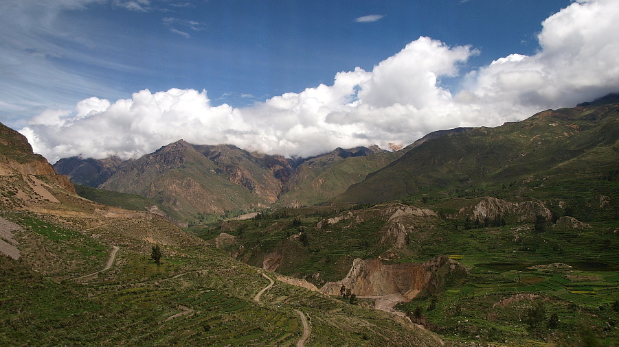 Rzeka Colca, po deszczach szumna i wyniosła, powoli przeobraża się w kanion. Podobno głębszy i to znacznie od Wielkiego Kanionu Kolorado.