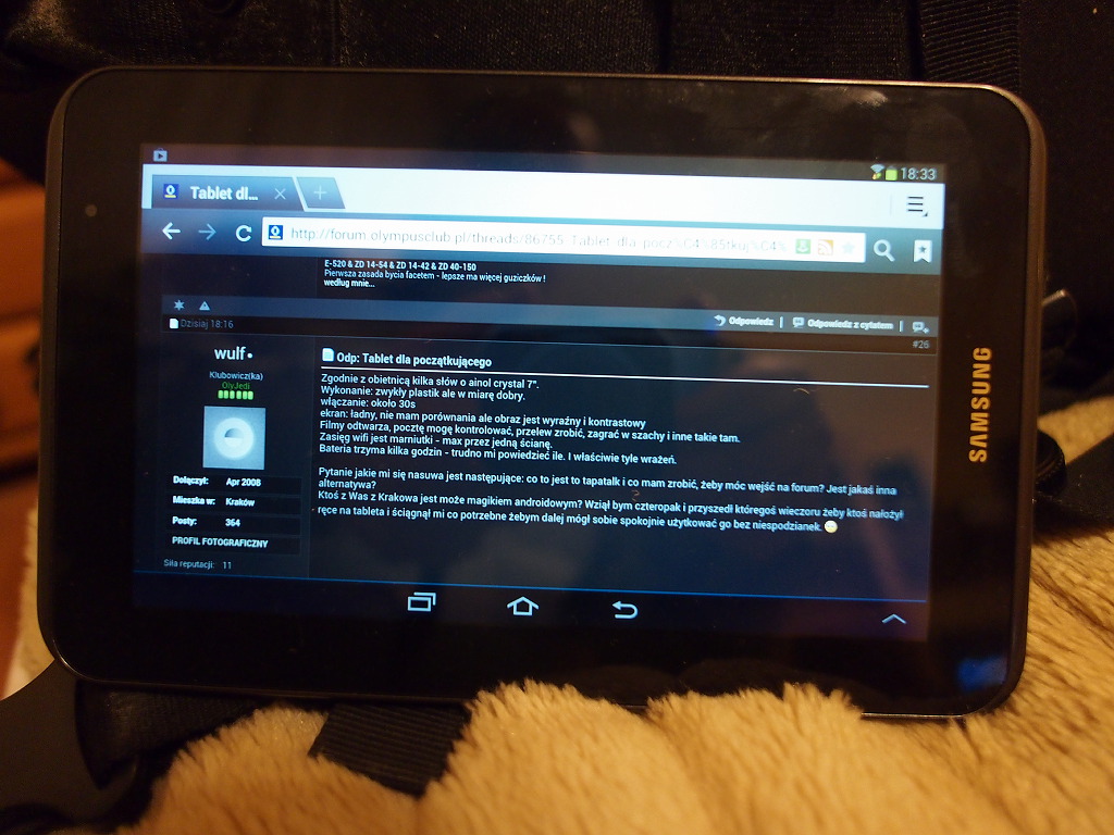 Kilka dni temu kupiłem swój pierwszy tablet w życiu. Miał być początkowo Samsung Note 10.1, a jak na razie skończyło się na sprzęcie marki Kruger&Matz (takim jak ten - http://allegro.pl/krugermatz-tablet-...093954332.html). Wyszedłem z podobnego założenia jak wulf - jak mi nie do końca będzie pasował, to dam go córce. Jak mi się spodoba używanie tabletu, to kupię po jakimś czasie lepszy. Jak na razie jestem zadowolony.