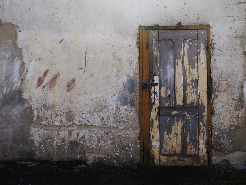 Świetnie widać strukturę tynku i łuszczącej się farby.