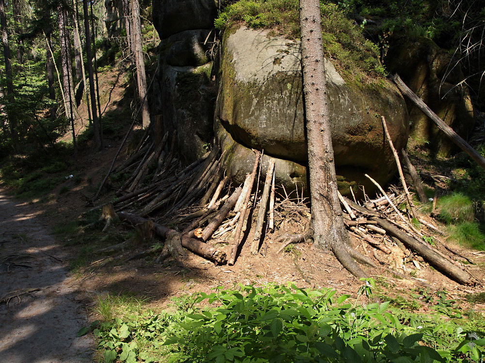 Idziemy dalej, wracając już w kierunku chaty obok Skalnej narzeczonej, gdyż szlak zawraca w tym kierunku. W trakcie gdy zastanawiamy się czy pokusić się jeszcze o zaliczenie Wilczego Jaru, mijamy Teplicką Wenus, Głowę psa i Czaszkę.