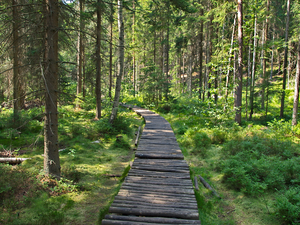 Większość szlaku prowadzi tutaj przez mokradła. Gdyby nie zbudowana kładka, trasa byłaby nie do przejścia. Niestety widać, że nie jest ten szlak traktowany z równą pieczołowitością jak te prowadzące przez tepliskie i adrszpaskie skalne miasta.