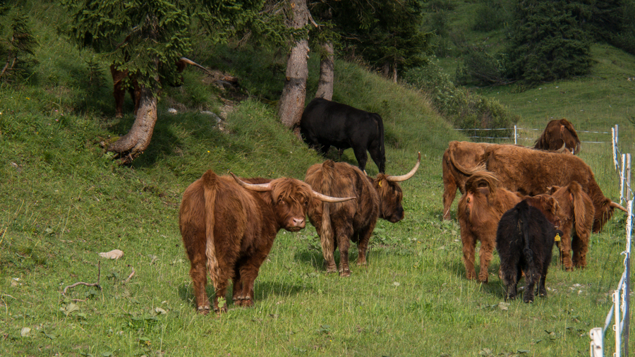 Główna różnica dla mnie pomiędzy Alpami i naszymi górami w których bywam to otwarta przestrzeń, mniej ludzi ale za to mnóstwo krów i zasieków. Podejrzewam, że to właśnie krowom zawdzięcza się, że drzewa nie zakrywają wszystkiego tak jak to miejsce w np. Gorcach. Niedogodnością jest przechodzenie przez ogrodzenia z drutu kolczastego lub pod napięciem. Dla pieszych to może nie problem bo są bramki ale czasami te bramki są wąskie i trzeba się nagimnastykować by przenieś rower.