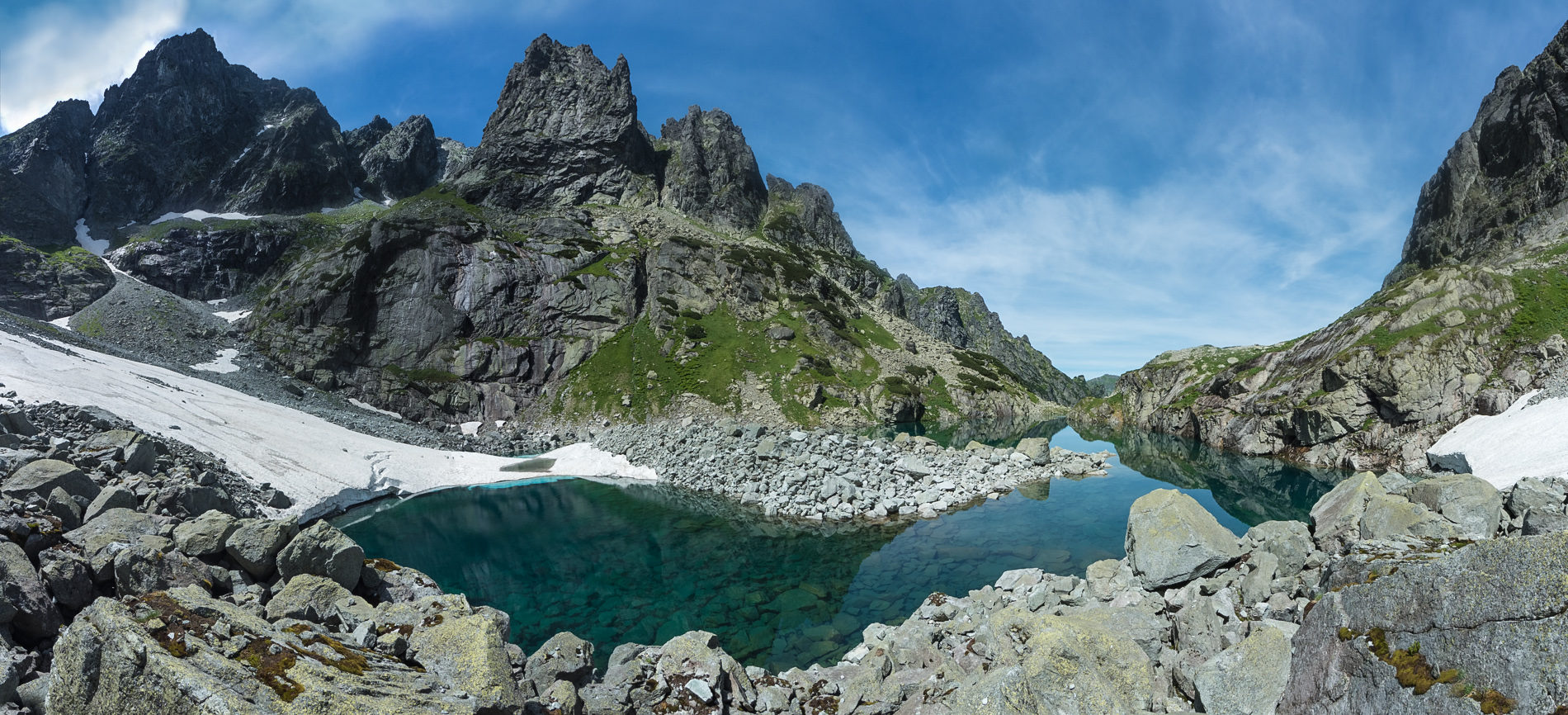 Nie, podszedłem kawałek pod żleb. Znad stawu wyglądało, że jest cały zasypany śniegiem, jednak wyżej wyglądało to lepiej, powinno dać się śnieg obejść. Kumpel jednak został na dole i zasnął nad stawem, a ja tam zostawiłem plecak i przede wszystkim telefon - tak to pewnie poszlibyśmy dalej.