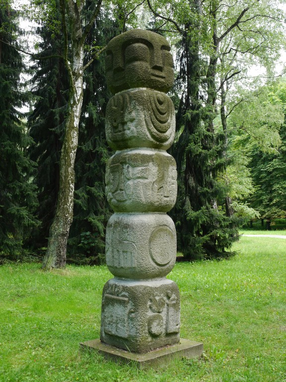 Kolejny obiekt z tego samego miejsca - z postury przypominał mi indiański totem, aczkolwiek treść rzeźby na nim wyglądała na jakiś średniowieczny motyw chrześcijański.