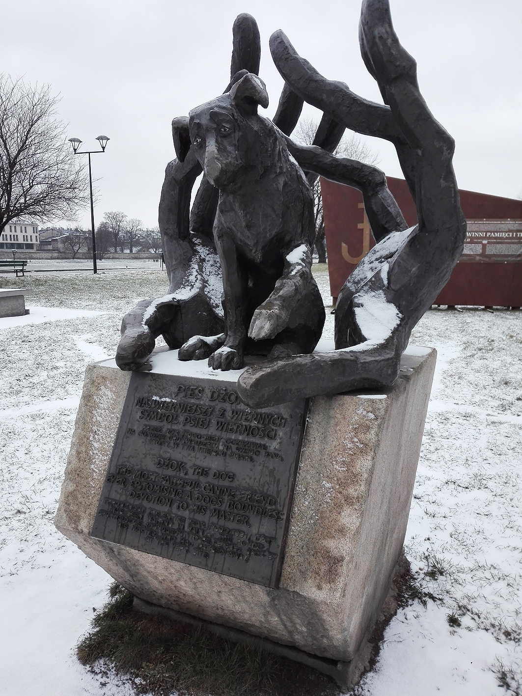 Pomnik psa Dżoka. na Wiślanych bulwarach w okolicy Wawelu.