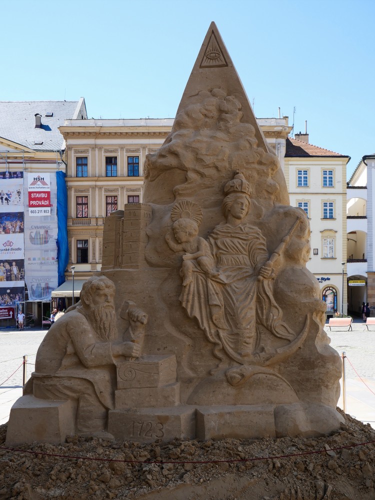 Rzeźba z piasku, upamiętniająca 300 letnią rocznicę powstania kolumny maryjnej, którą eksponowano w tym roku, na Dolnym Rynku w Ołomuńcu.