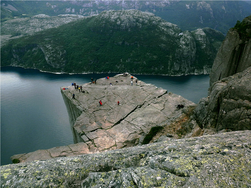 Klif o wysokosci 640m.Nad Lysefjorden /dl.40km./Wedrowka zaczyna na 270m.npm. Trasa do przejscia 3800m.Spacerkirm 2godz.