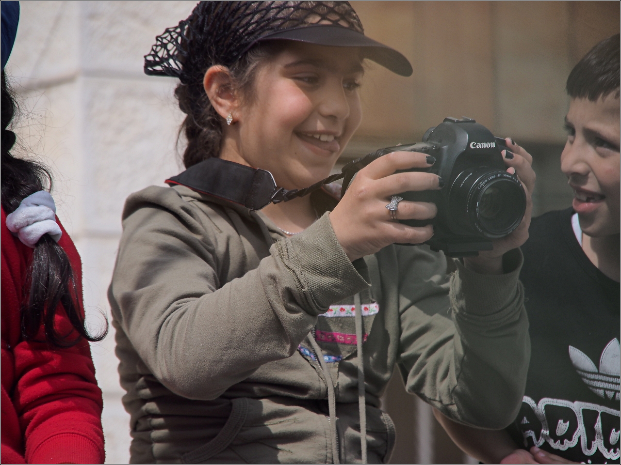 23. Mnie zainteresowało, czym robią zdjęcia palestyńskie dzieci Utrata kontrastu to nie wina obiektywu, prawdopodobnie w kadr, poza zakresem ostrości wszedł fragment jakiejś gałązki palmowej