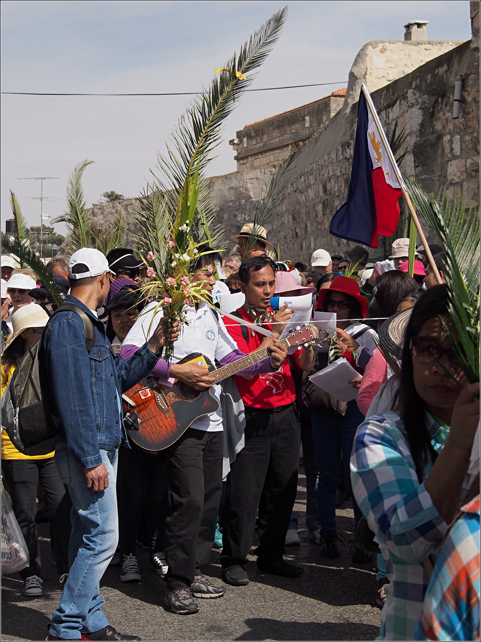 W korowodzie biorą udział katolicy z różnych zakątków Świata, śpiewając "Hosanna" w różnych językach. Procesja przez to nie ma jednolitego kolorytu