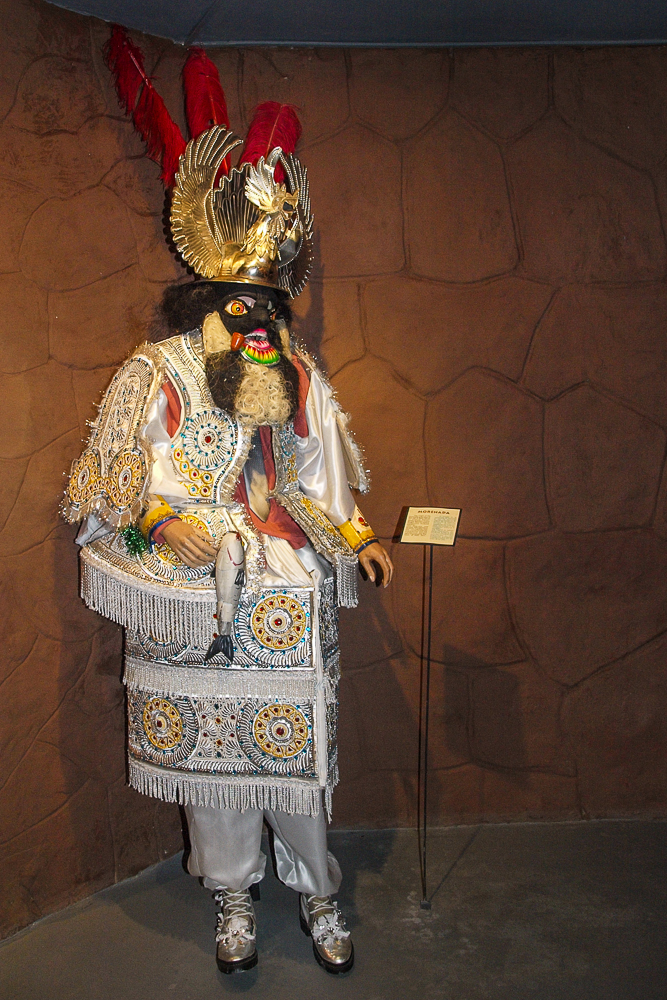 Maska i kostium tancerza z drugiego co do wielkości karnawału Ameryki Południowej odbywającym się w górniczym mieście Oruro w Boliwii. W tego typu strojach przedstawiano taniec czarnych niewolników - La Morenada.