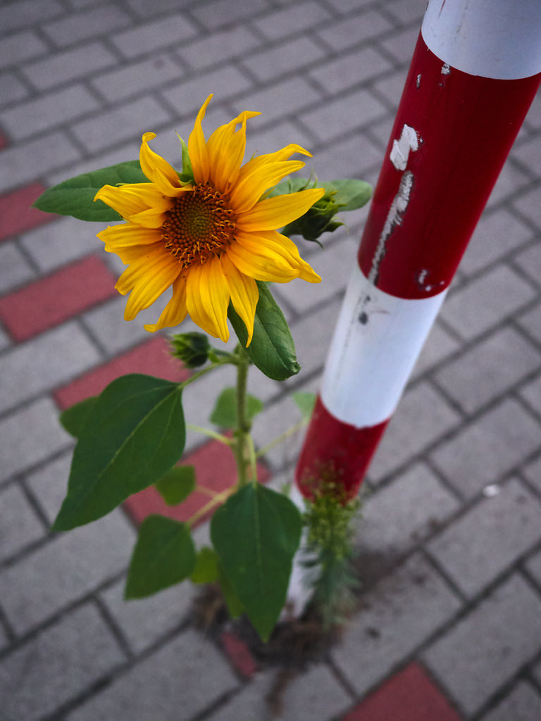 119 - Waleczny słonecznik! ciekawy motyw, odwieczna walka natury z działalnością człowieka.