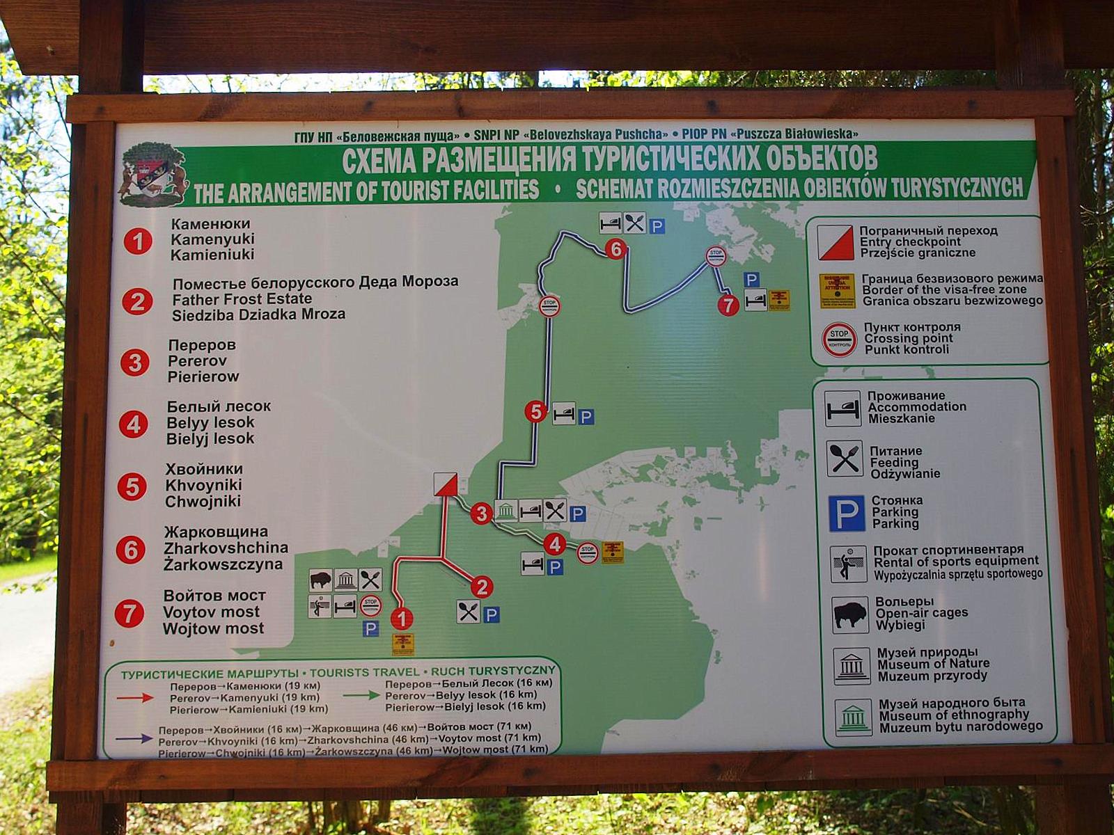 Muzeum Przyrody znajduje się na terenie Puszczy Białowieskiej, kilkaset metrów od granicy miasta Kamieniuki. Poza ekspozycją muzealną na obszarze Centrum Ekologicznego są sale konferencyjne i sala kinowa, w której prezentowane są filmy o przyrodzie puszczy. Sama część ekspozycyjna składa się z trzech dużych sal i dwóch dodatkowych pomieszczeń o łącznej powierzchni 1320 mkw. Ekspozycja muzealna została przygotowana przez białoruską spółkę "Художественный комбинаt" (w wolnym tłumaczeniu: Kombinat Artystyczny) i składa się z szeregu powiązanych ze sobą bloków tematycznych prezentujących faunę i florę Puszczy Białowieskiej. Trzon ekspozycji stanowią popularne we wschodnim muzealnictwie dioramy, uzupełnione projekcjami multimedialnymi i zdjęciami lasu.