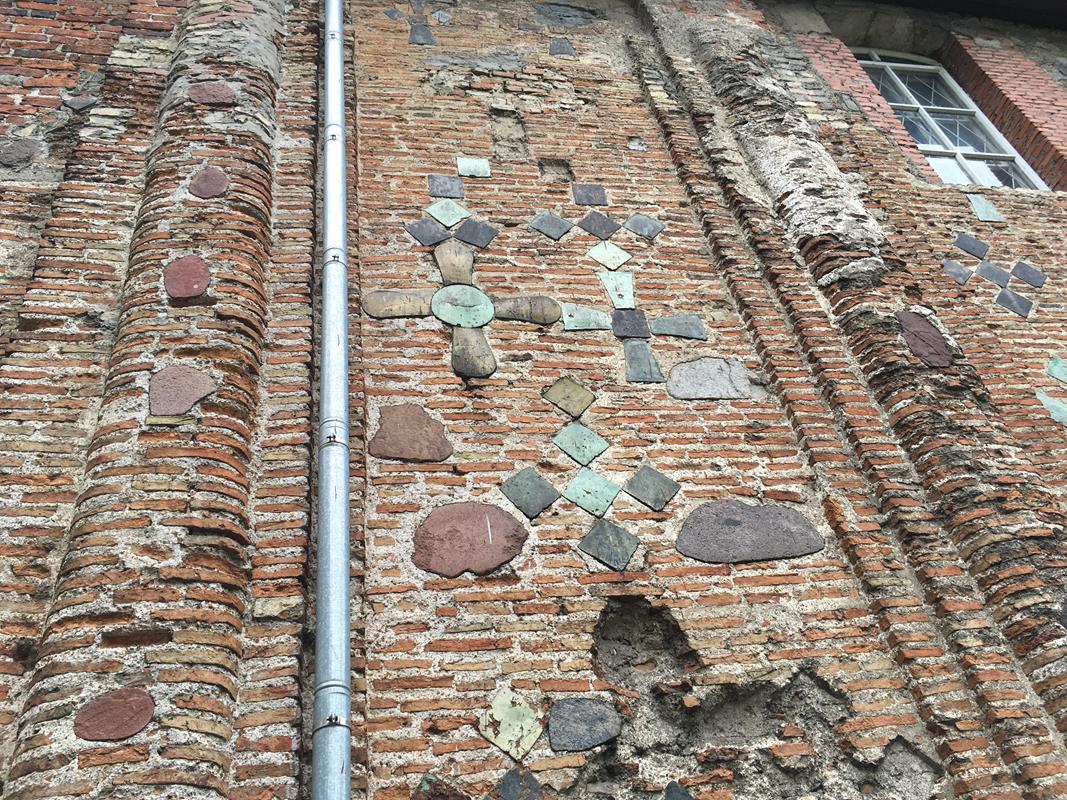 Była to halowa budowla trójnawowa o trzech absydach, wzniesiona z cegły z dodatkiem kamienia oraz posiadająca dekorację w postaci barwnych ceramicznych plakiet, układanych w krzyże na zewnętrznych ścianach.