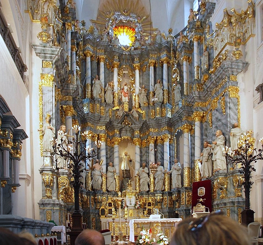 Słynie z monumentalnego ołtarza. W 1707 rzeźbiarz z Królewca Christoph Pöcher wykonał projekt ołtarza głównego i ołtarzy bocznych. Sześć z nich wykonano w Wilnie i Królewcu i przywieziono do Grodna w latach 1709 Ń 1715. W 1716 dostarczono dalsze cztery. Ołtarz i rzeźby wykonane z drewna.