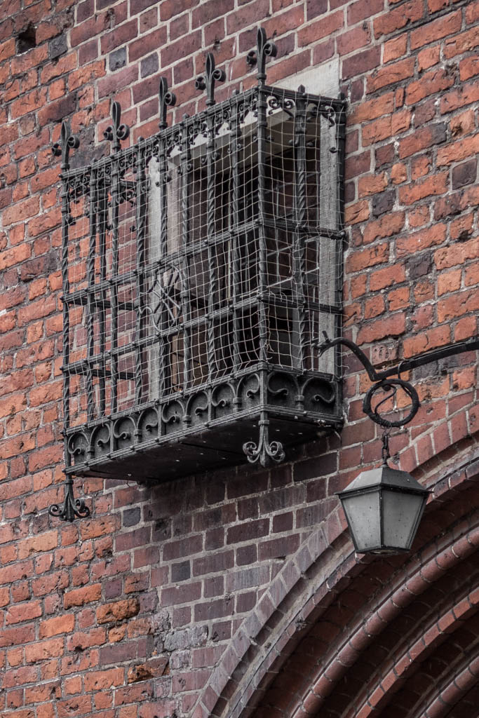 Po wyjściu z bramy na dziedziniec odruchowo spoglądam za siebie i wzrok mój przykuwa podwójnie zabezpieczone okno: ozdobną, starą, pięknie kutą kratą oraz funkcjonalną, paskudną, współczesną, siatką przeciw ptakom