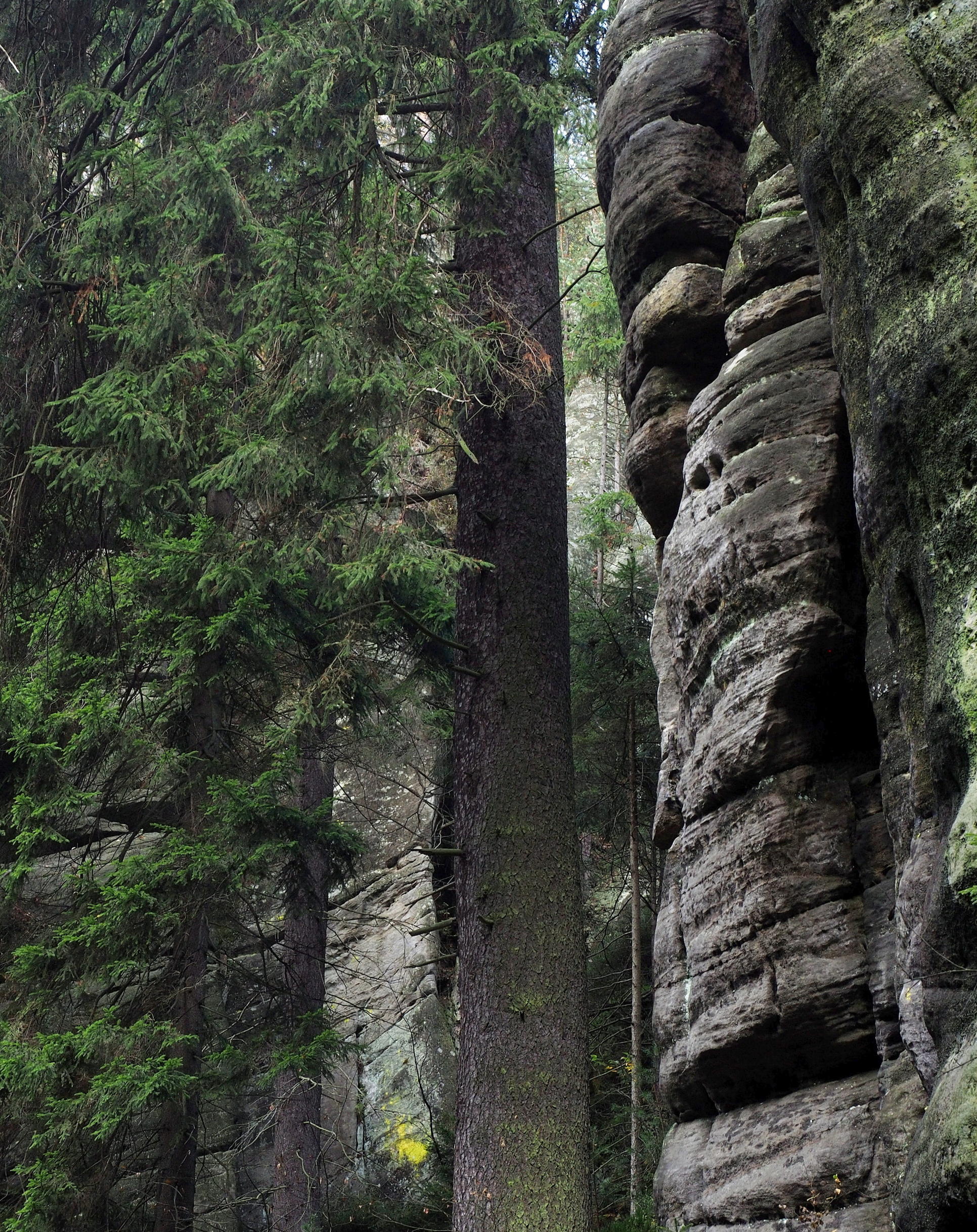 Pogoda na skały faktycznie średnia. Przydałoby się słońce około południa by wpadało w szczeliny. Przy takiej aurze jaką zastałeś posiłkowałbym się pomiarem matrycowym i bracketingiem 5 klatek co 1 EV. Wybrałbym to nieprzepalone i podciągałbym cienie bez nadmiernej przesady albo użyłbym czegoś do składania HDR. Ale rozumiem, że to wątek zdjęć prosto z puszki.