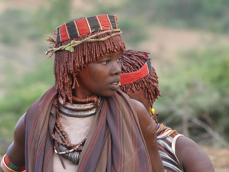 Wracajmy jednak do imprezy, ta trwa na całego, młodzieńcy popisują się przed dziewczynami, kobiety maszerują pobrzękując miedzianymi bransoletami na nogach. O zachodzie słońca główny bohater inicjacji musi kilkakrotnie przebiec nago po grzbietach byków ustawionych bokiem do siebie, od tego momentu może mieć żonę![]()