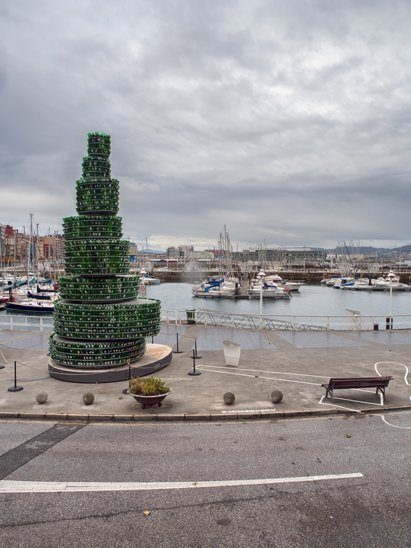 Marina w deszczowym La Coruna, z nutą świątecznego nastroju.