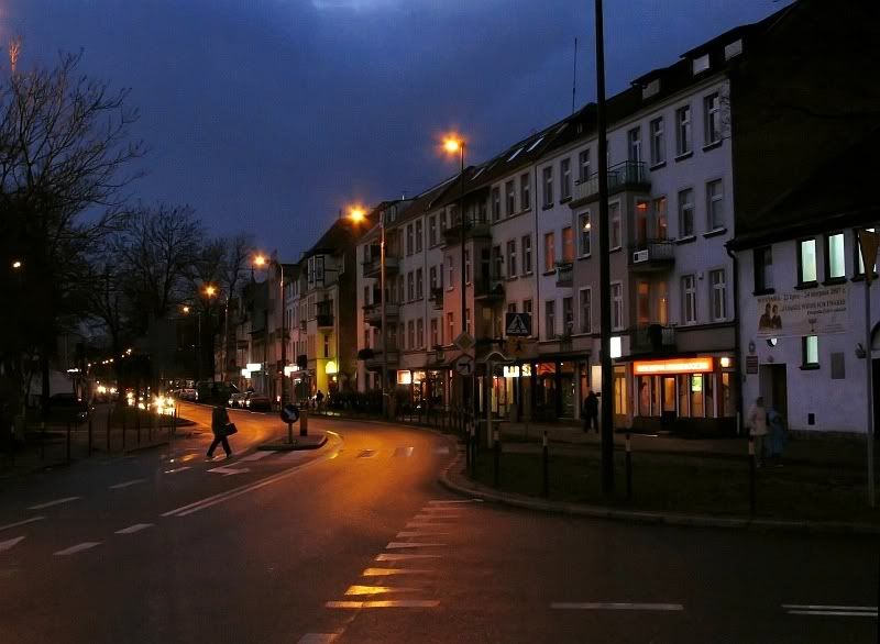 Jeśli chodzi o Twój pomysł zastosowania dłuższych czasów naświetlania po to, aby uzyskać rozmyte samochody, a przede wszystkim smugi świateł, to uważam, ze jednak moje zdjęcia sa zbyt kameralne do takich efektów. Takie pasemka świateł są bardzo agresywne i pasują bardzo do ogólniejszych, szerokich planów, jakieś place, ronda, duże gmachy, no niewiem co tam jeszcze. Wykonałem szerego zdjęć we Wrzeszcu z takimi czasami (około 5 ujęć w różnych miejscach) - może tam jest zbyt duży ruch - chaotyczny - bardzo przerywany przez światła na skrzyżowanich, może sceneria nieodpowiednia, zbyt dużo ludzi na chodnikach (wszyscy rozmyci) bo nie wyglądało to w moich oczach strawnie.1, 6 i 7 próbowalbym zrobić przy nieco dluższym czasie naswietlania.