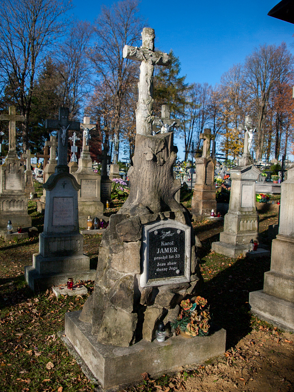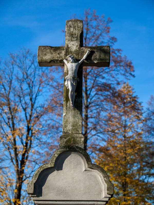 Szczególnie interesująca jest malarsko-rzeźbiarska dekoracja ściany i belki pomiędzy nawą i prezbiterium. Malowidło na ścianie uzupełnia rzeźbiarskie przedstawienie Grupy Ukrzyżowania. Centralna postać malowidła – żołnierz na koniu – przebija włócznią bok Chrystusa na krzyżu ustawionym na belce.