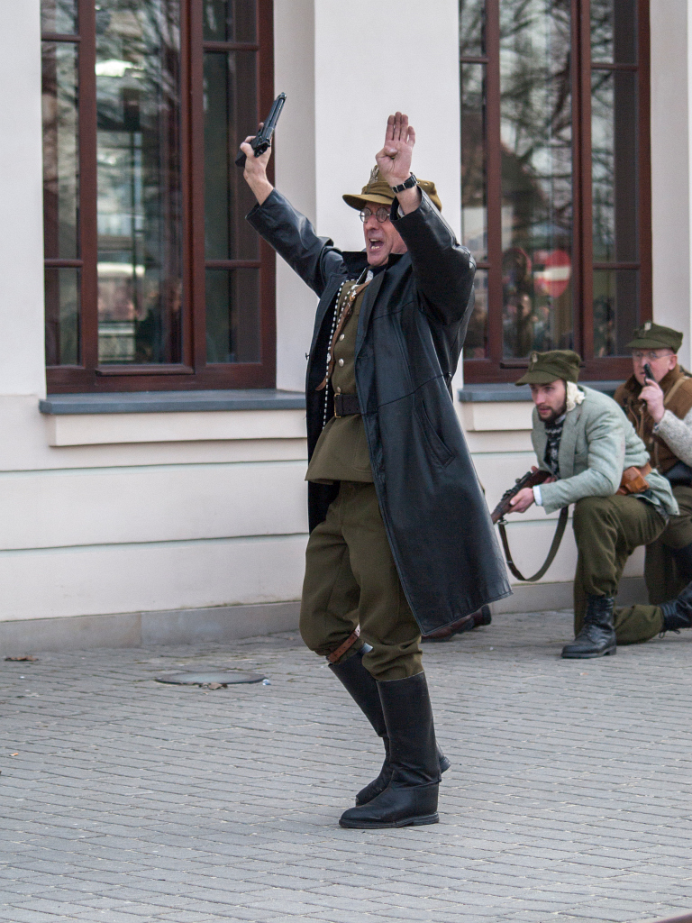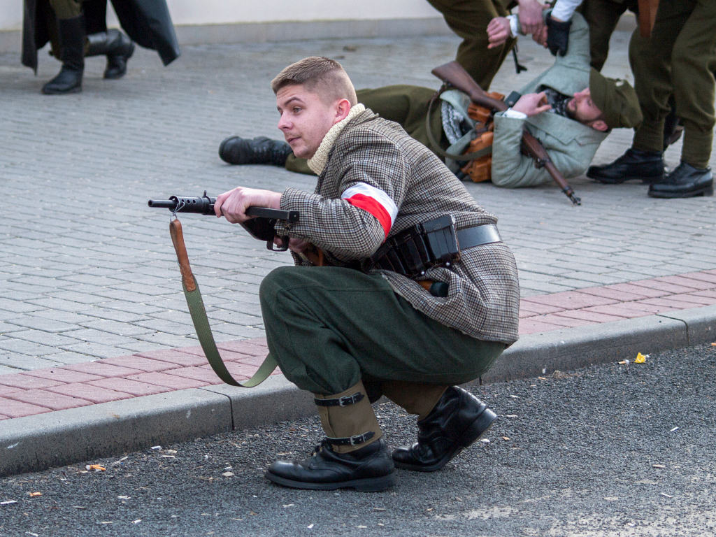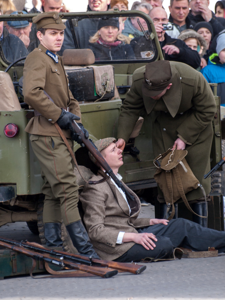 Ten rekonstruktor jest w mundurze 1 Pułku Strzelców Podhalańskich Armii Krajowej. Symbol na wyłogach kołnierza to żadna swastyka tylko tzw. krzyż niespodziany lub podhalanka. W przedwojennym 1 PSP (którego tradycje kontynuowała jednostka AK) używanie tego symbolu było oficjalnie usankcjonowane rozkazem Ministra Spraw Wojskowych z dnia 21 czerwca 1919 r.