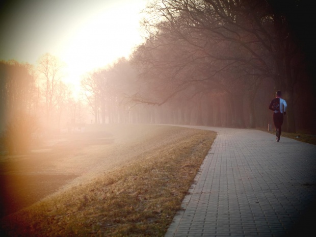 Biegcz jest za bardzo z prawej - kryje się. I jeszcze potęguje, to winieta.
