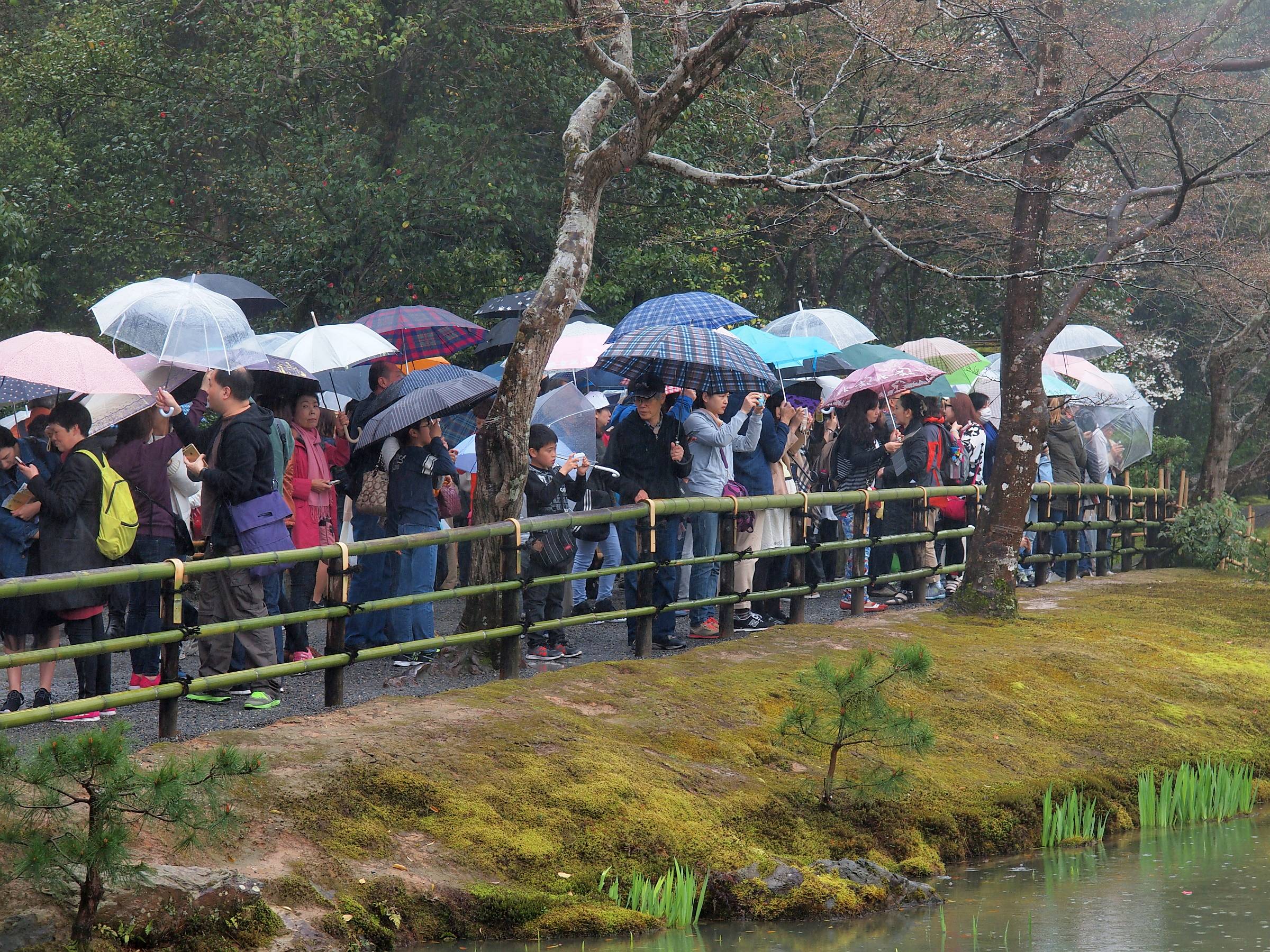 Złoty Pawilon - Kinkaku-ji (金閣寺 ) Pierwotnie willa potężnego Shoguna (Ashikaga Yoshimitsu), zbudowana w 1397. Przekształcona w świątynię Zen po jego śmierci (zresztą zgodnie z jego wolą). Przetrwała stulecia ( w tym drugą wojnę światową) ale niestety spłonęła w 1950 roku w wyniku podpalenia. Odbudowano ją w 1955 roku (ściany pokryte są cienką warstwą złota). Bez względu na pogodę i porę roku jest zawsze tłumnie odwiedzana. Mieliśmy szczęście widzieć ją po raz trzeci (nic się nie zmieniła od tych kilku lat), niestety po raz pierwszy, w ulewnym deszczu... Obok Złotego Pawilonu jest oczywiście przepiękny ogród, ale zrezygnowaliśmy z chodzenia po ogrodzie - za dużo deszczu i ludzi... Może następnym razem?