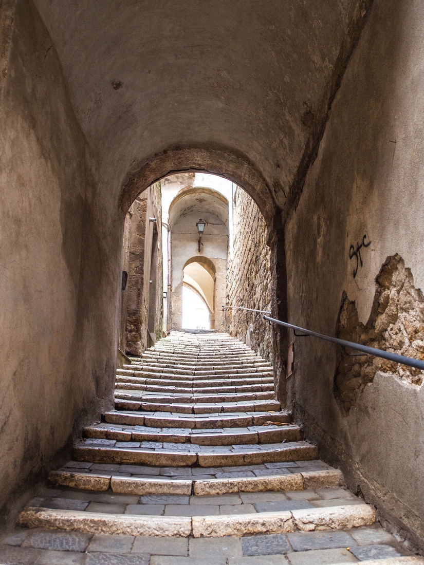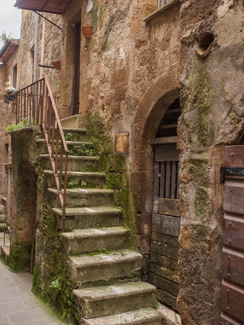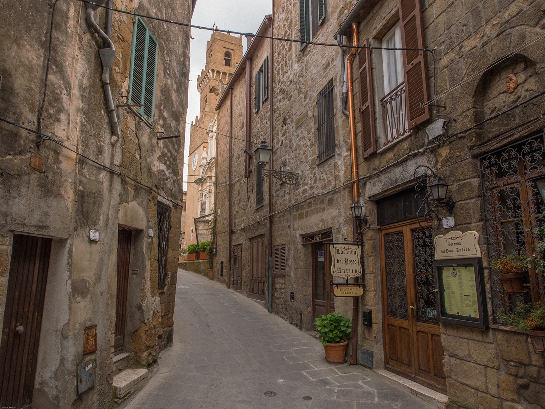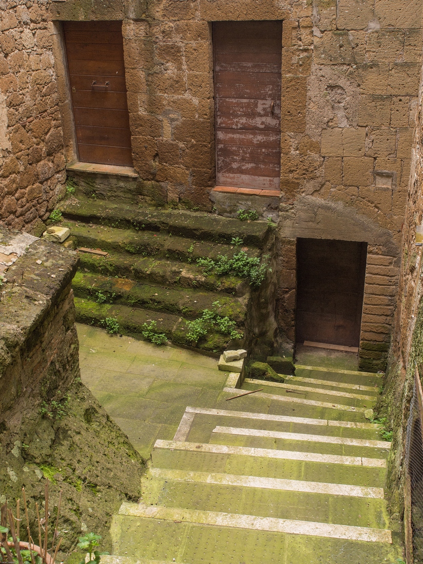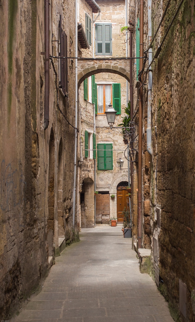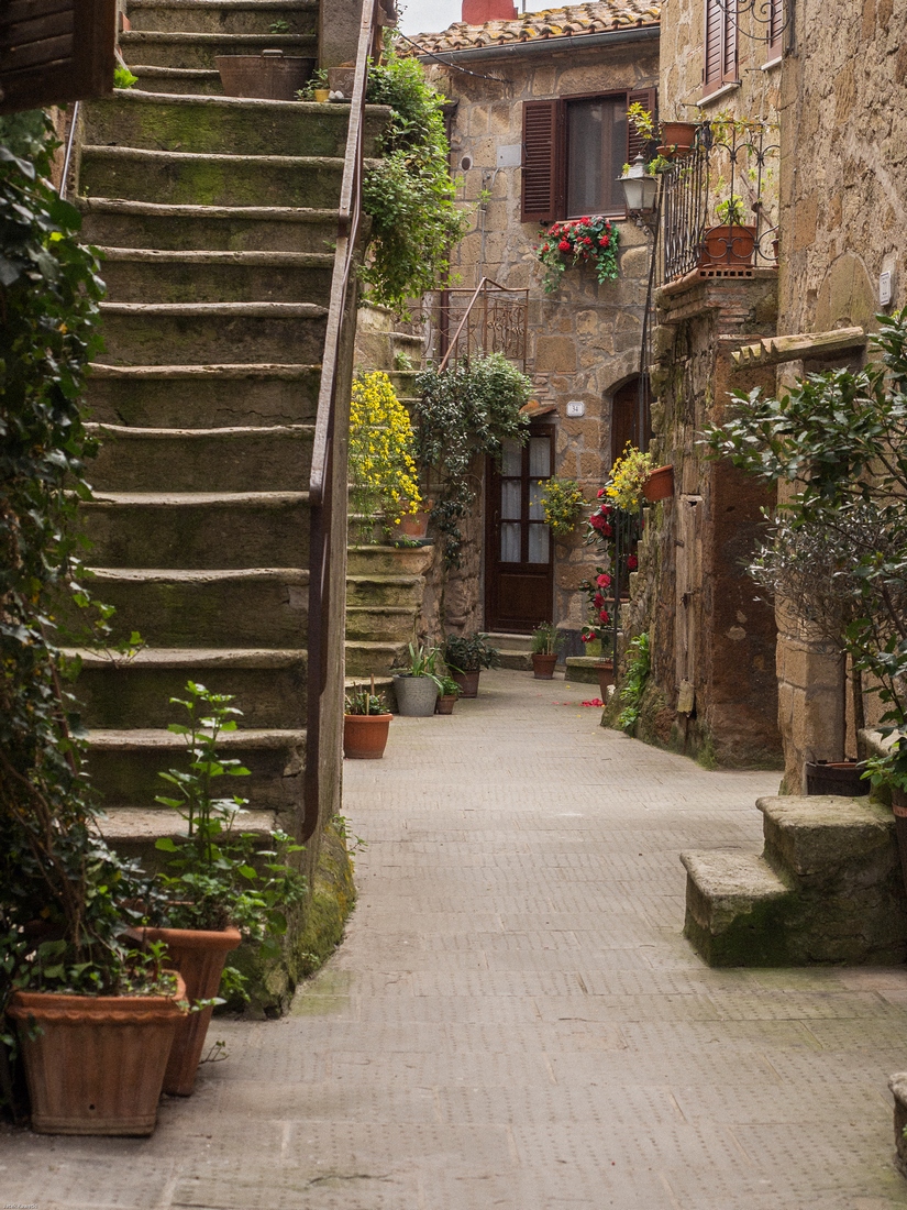 Pitigliano jest miejscem zamieszkania ponad 4.000 ludzi. Podejrzewam, że wrażenie,że wygladają pusto wynika ze sposobu aktywności ludności lokalnej. Jej godzin funkcjonowania w przestrzeni publicznej. Miasteczko jest dłużej wymieniane w materiałach pisanych od większości miejscowości polskich. To jest powszechna tam prawidłowość - wtedy gdy oni budowali swoje chwalące Boga katedry my chodziliśmy po dróżkach w puszczach lub zaczynaliśmy karczować te puszcze....Murowane grody powstawały w późniejszych wiekach.