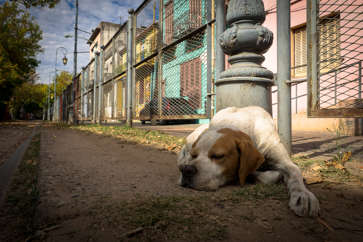AUGG6 - Dotarliśmy na późny obiad od dzielnicy La Boca. Zostawiam ją w tej chwili w spokoju, bo będzie o niej później. Bardzo kolorowa i ciekawa dzielnica Buenos. Po wyjściu z autobusu natknąłem się na takiego kolegę. Nawet oka nie otworzył. Nie byłem pewny czy aby żyje