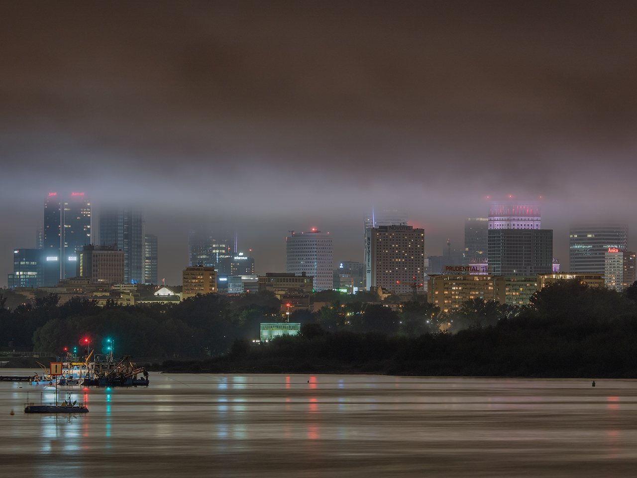 342 jest znakomita, bajkowa, fantastyczna, Przestrzeń na wodzie, czarna maszyna na wodzie, światła, w dali tajemniczość delikatnie namalowana.